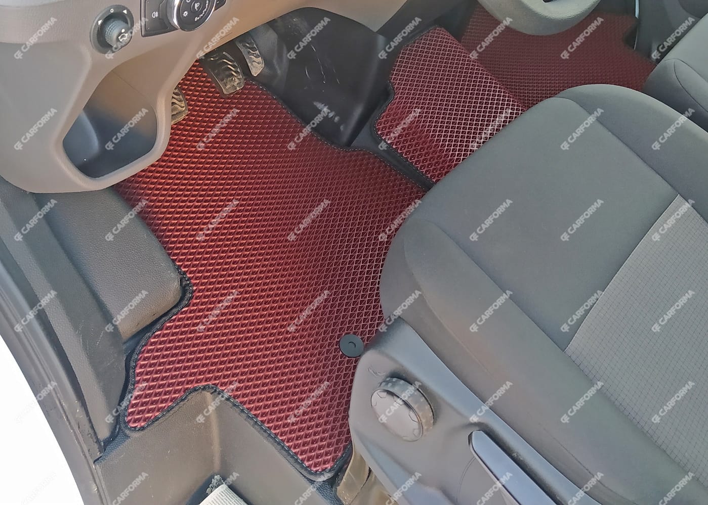 - Передние ковры полностью закрывают место под левую ногу водителя (зависит от авто)