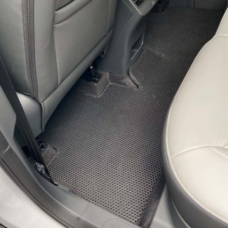 Автоковрики ЕВА не впитывают, а удерживают грязь в ячейках. Вода не катается по полу, как в резиновых половичках, однако, её все равно видно. ЕВА удобны тем, что их легко достать не пролив и вытряхнуть. Они дешевле.