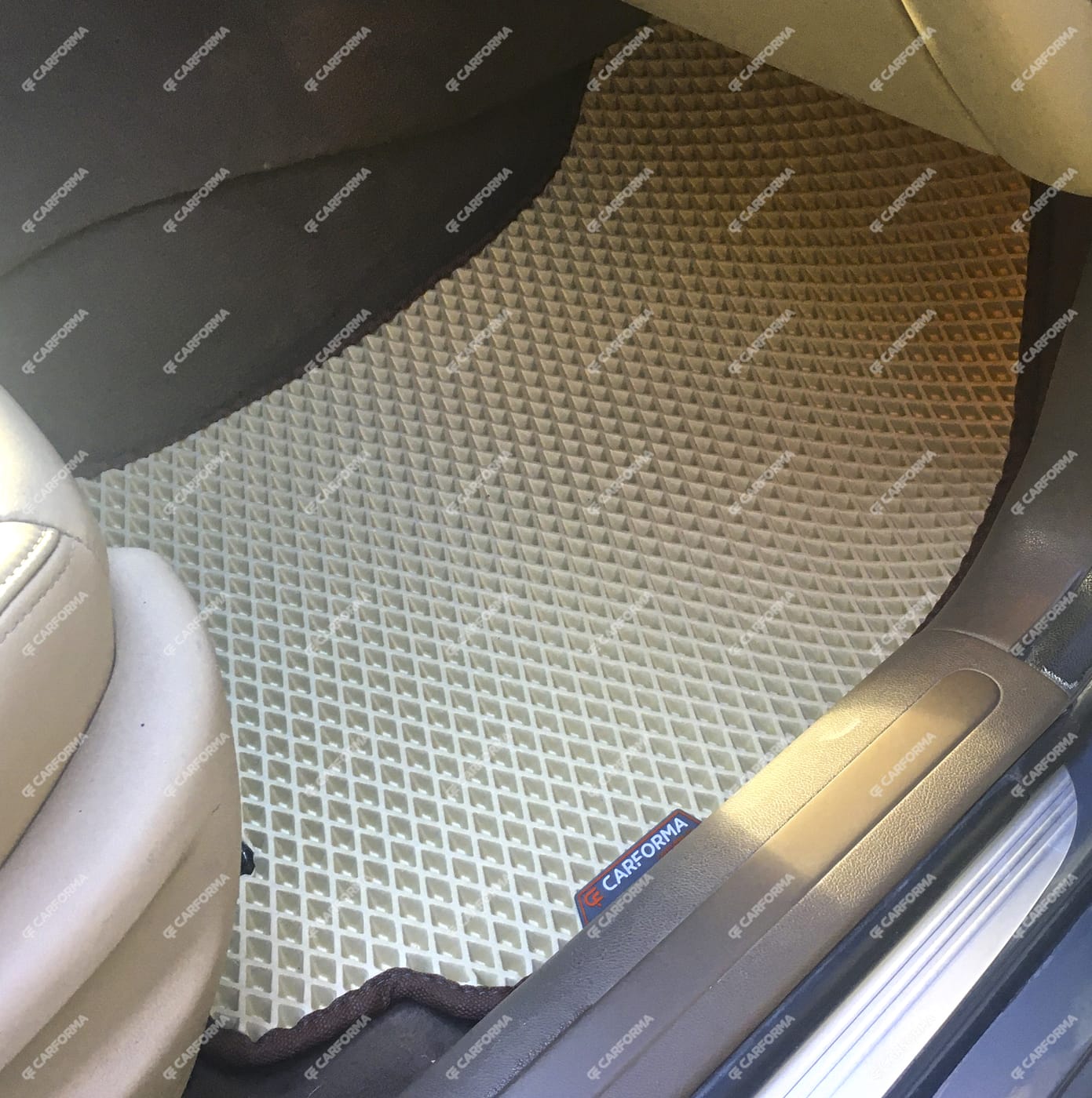 Автоковрики ЕВА не впитывают, а удерживают грязь в ячейках. Вода не катается по полу, как в резиновых половичках, однако, её все равно видно. ЕВА удобны тем, что их легко достать не пролив и вытряхнуть. Они дешевле.