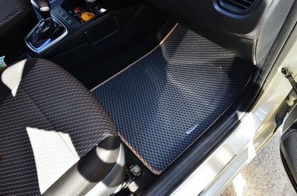 Автоковрики ЕВА не впитывают, а удерживают грязь в ячейках. Вода не катается по полу, как в резиновых половичках, однако, её все равно видно. ЕВА удобны тем, что их легко достать не пролив и вытряхнуть. Они дешевле.